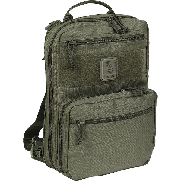 Компактный многофункциональный ранец с различными вариантами ношения и увеличивающимся при необходимости основным объемом. Предназначен для использования как в качестве тактического элемента снаряжения, так и для повседневной носки в городе (EDC). Три варианта ношения: В качестве ранца. В комплекте съемные плечевые лямки из широкой стропы, крепящиеся к двухщелевым пряжкам по углам спинки ранца В качестве вертикально ориентированной сумки через плечо. В комплекте съемная плечевая лямка из широкой стропы, крепящаяся карабинами-крючками к пластиковым полукольцам, нашитым в области верхних углов спинки В качестве ранца на спине разгрузочных систем и бронежилетов. Практичная прямоугольная форма. Габариты позволяют разместить внутри папку А4 По периметру задней стенки ранца проходит молния, при расстегивании которой объем основного отделения увеличивается почти в 2 раза Основное отделение расстегивается полностью до самого дна, позволяя раскрыть ранец на 180° для удобного доступа к содержимому Совместимость с питьевыми системами объемом до 2 л включительно (гидратор в комплект не входит!). На спинке сверху имеется подрезиненная прорезь для вывода трубки питьевой системы, а на изнанке объемный карман с открытым подрезиненным входом и подвес из стропы с липучками для установки гидратора Крепление PALS/MOLLE с двумя бескнопочными клипсами. Для крепления необходимо 4 ячейки PALS в ширину и до 6 горизонтальных рядов строп PALS в высоту Сверху спинки ручка для переноски Съемные плечевые лямки оснащены фастексами для регулировки и быстрого сброса Передний объемный карман на молнии с боковыми ограничителями-клиньями для защиты от выпадения содержимого. Внутри на задней стенке плоский карман с открытым входом, плоский карман на молнии и панель из липучки-петли для крепления съемных кобур, органайзеров и т. п. снаряжения. Внутри на передней стенке большой органайзер из нескольких рядов резинок. На внешней стороне передней стенки имеется плоский карман на молнии Сверху ранца расположен вход на молнии в плоский карман во всю высоту передней стенки, под ним — широкая панель из липучки-петли для крепления шевронов (съемный ПВХ логотип в комплекте) или символики официальных ведомств и служб